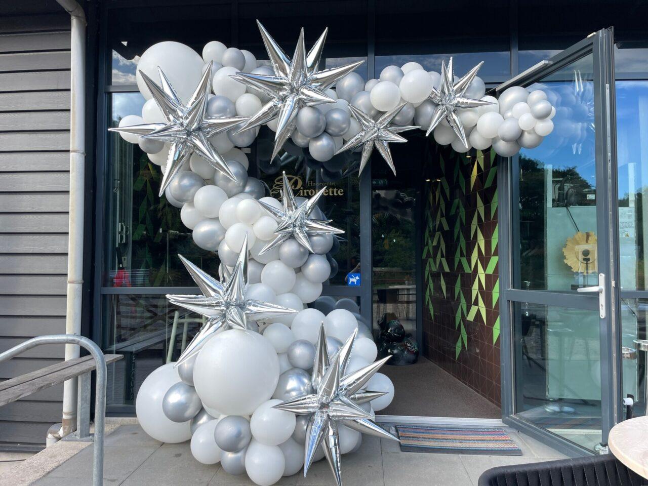 Ballonnen die een unieke natuurlijke vorm hebben aan een enkele zijde van de entree.